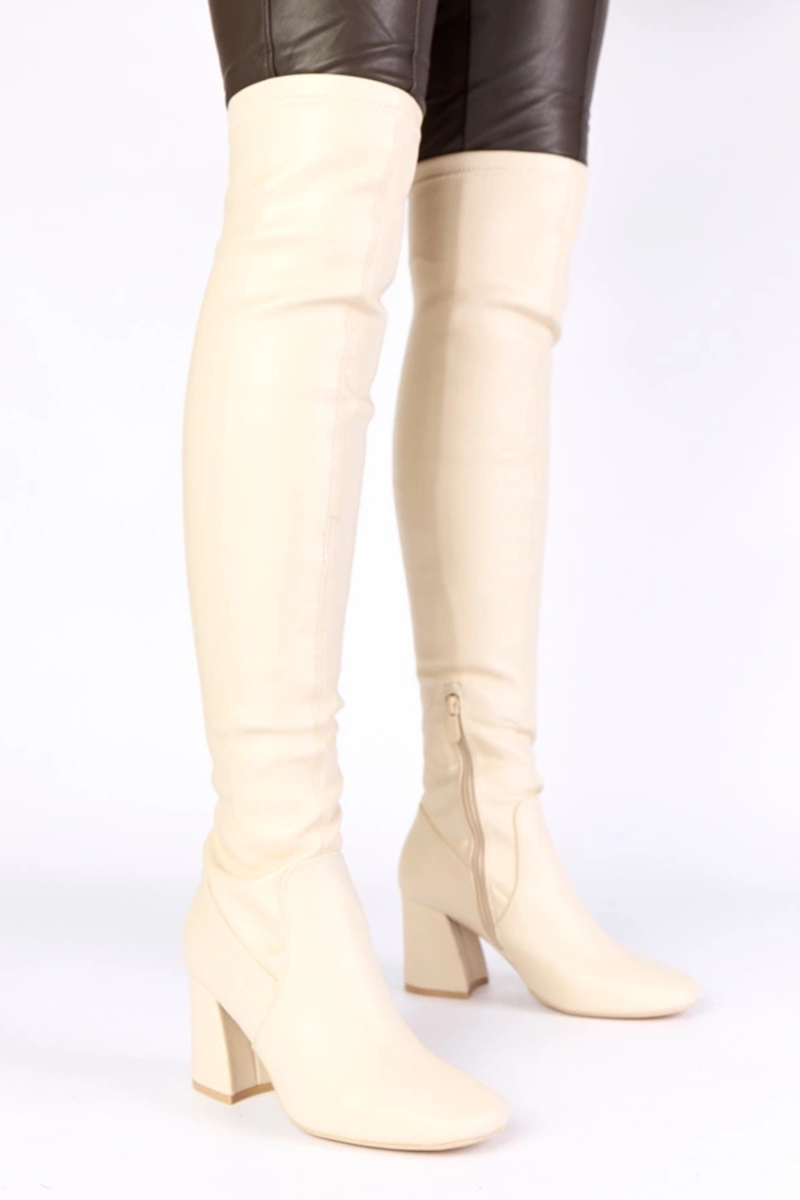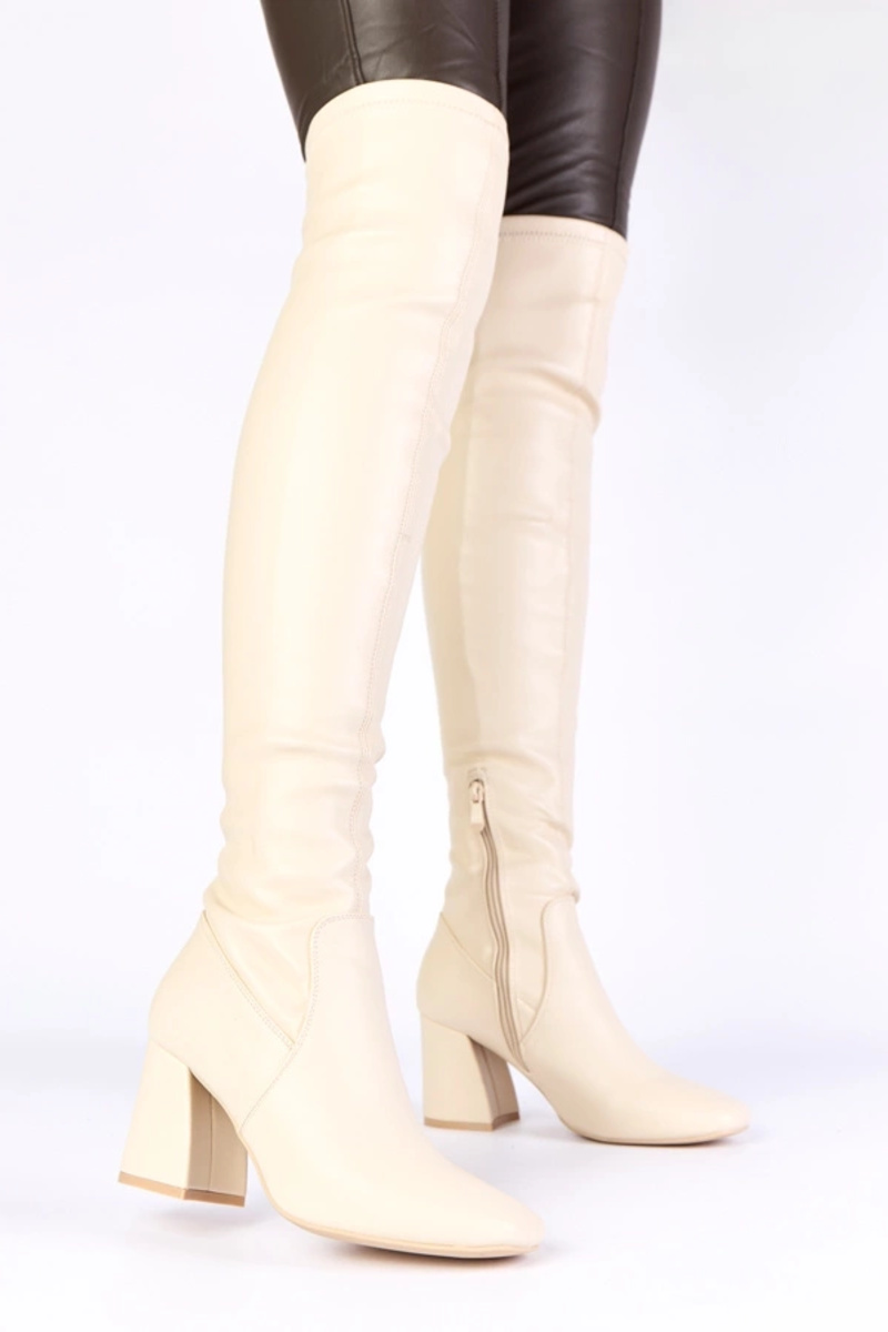 Beżowe kozaki na słupku za kolano Louna