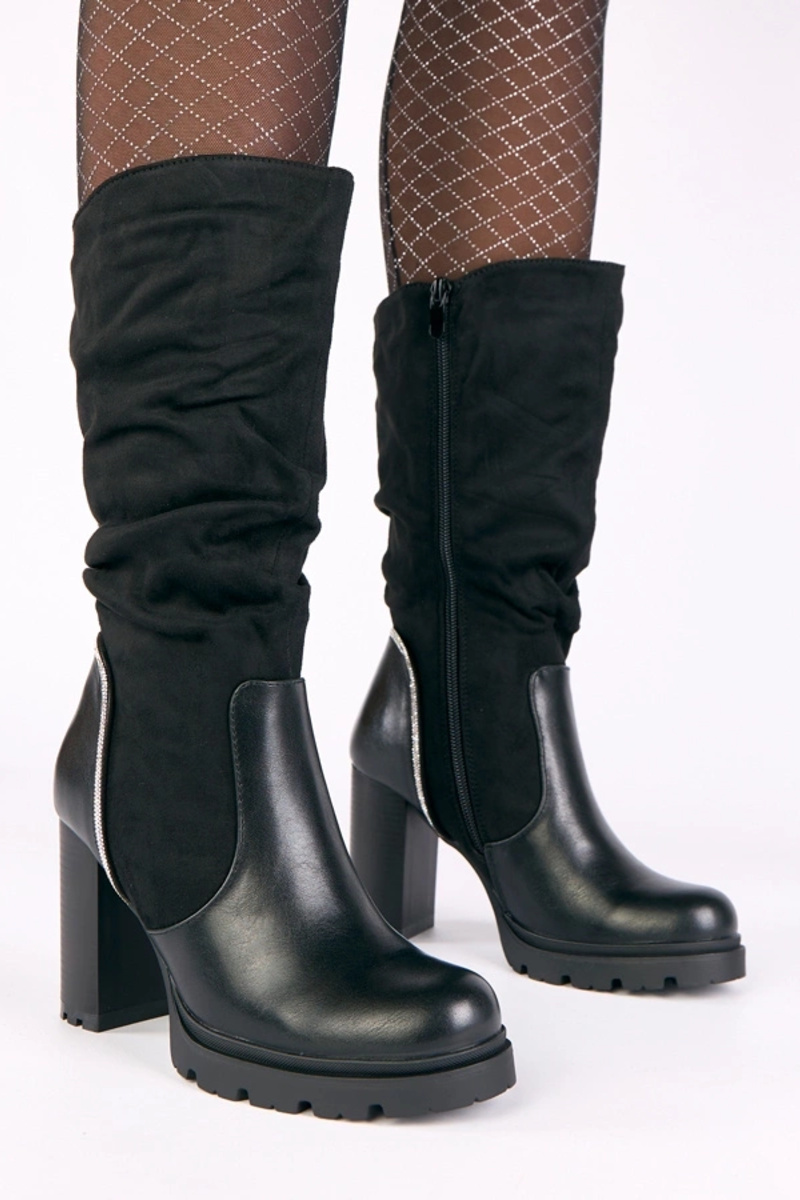 Czarne kozaki na słupku zdobione cyrkoniami Simreta