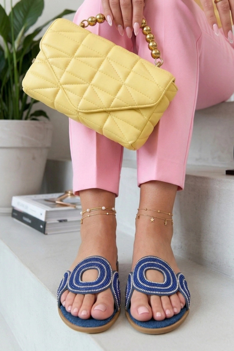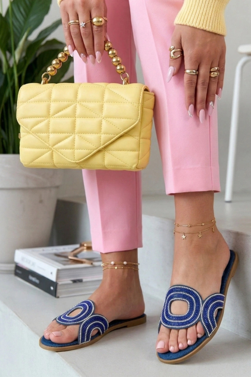 Granatowe Klapki Zdobione Cyrkoniami Olivia