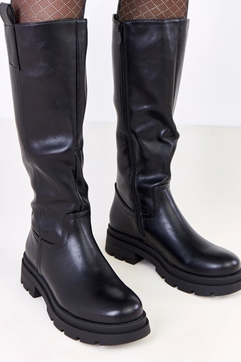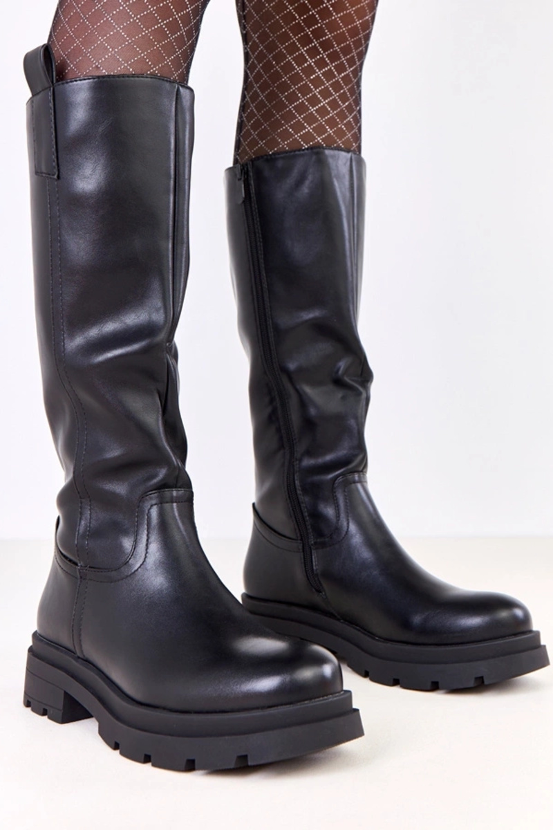 Czarne kozaki damskie z ekoskóry Klarina