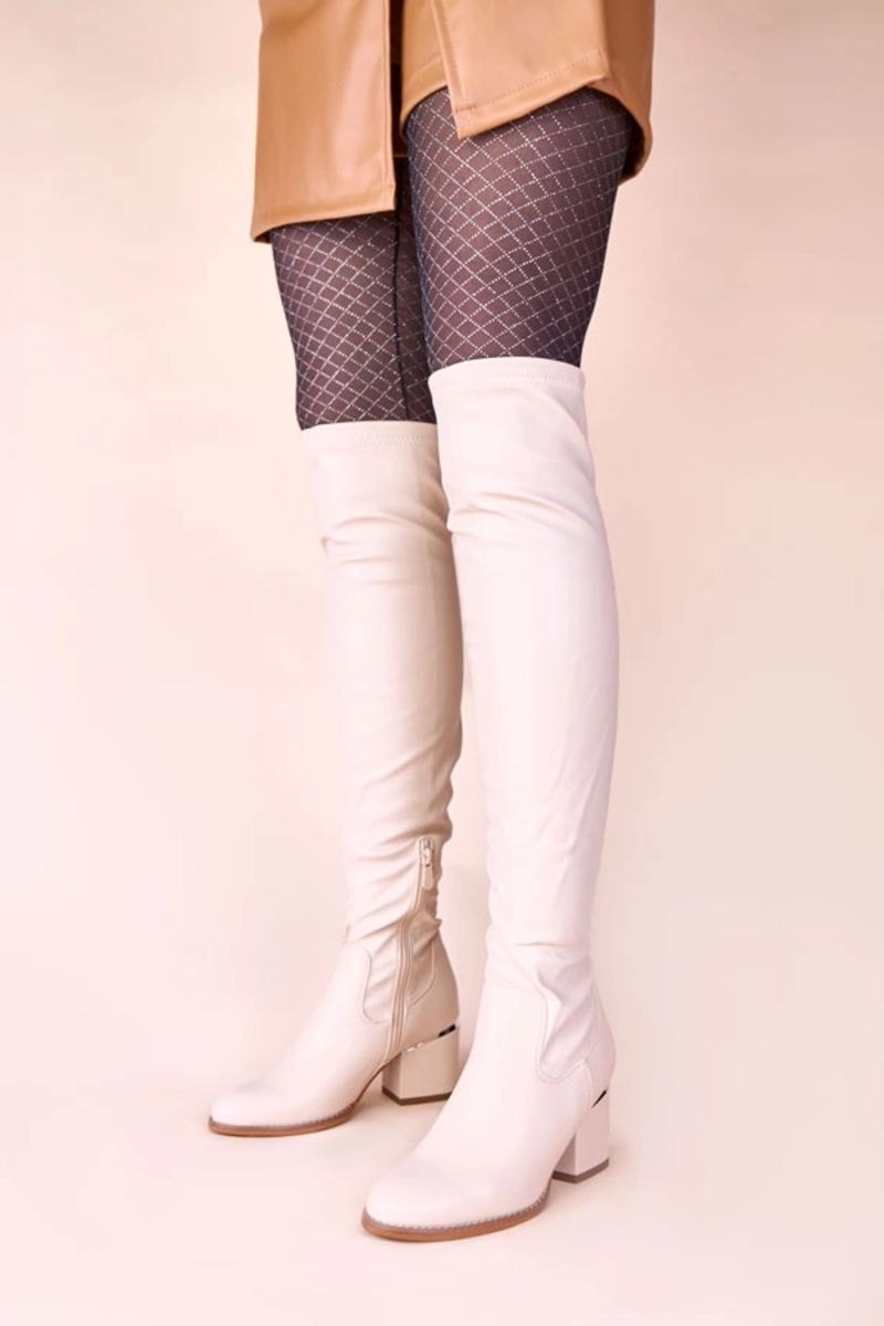 Beżowe kozaki za kolano na ozdobnym klocku Onka