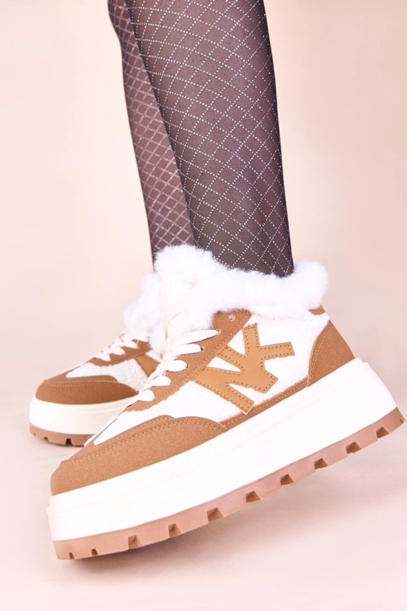 Brązowe sneakersy ocieplane z futerkiem Nicha