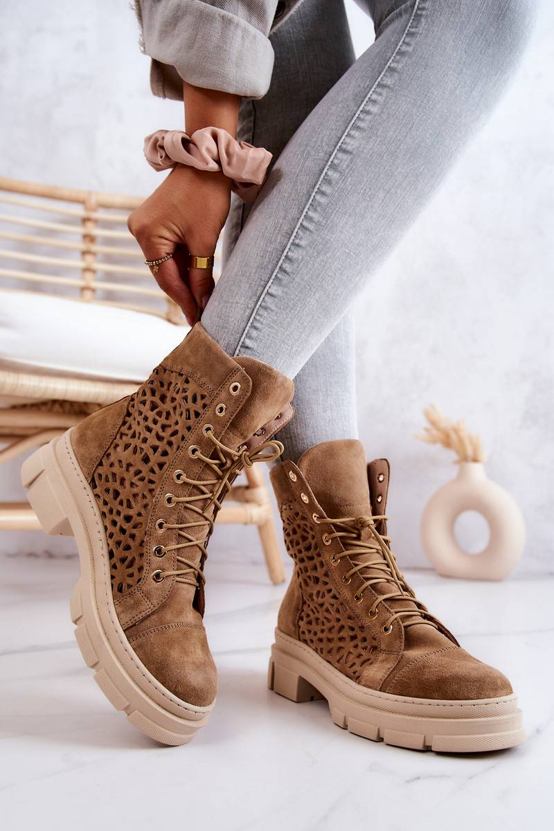 Ažūriniai aulinukai iš zomšos rudos spalvos Aileen