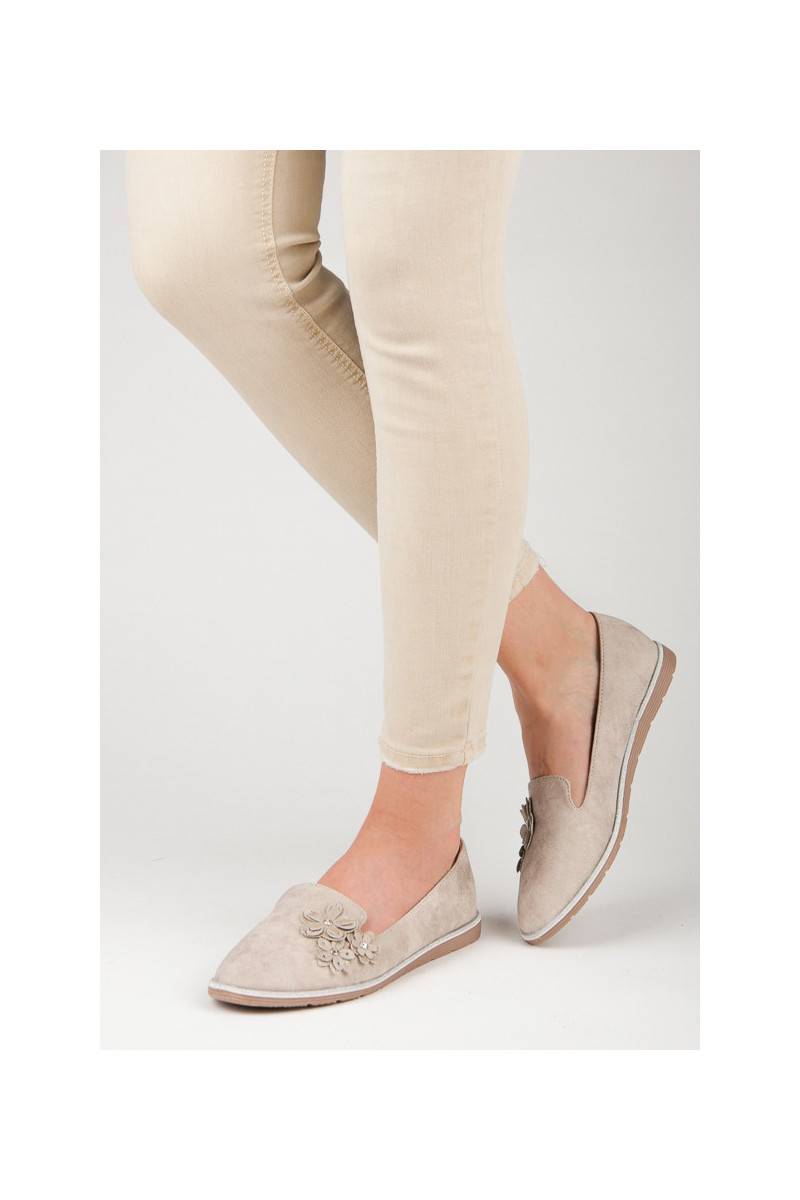 Smėlio spalvos lordsai su gėlių aplikacijomis.