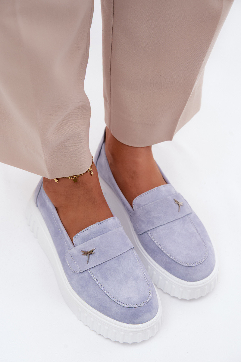 Moteriški zomšiniai batai su platforma, įsispiriami Vinceza 93218 mėlynos spalvos
