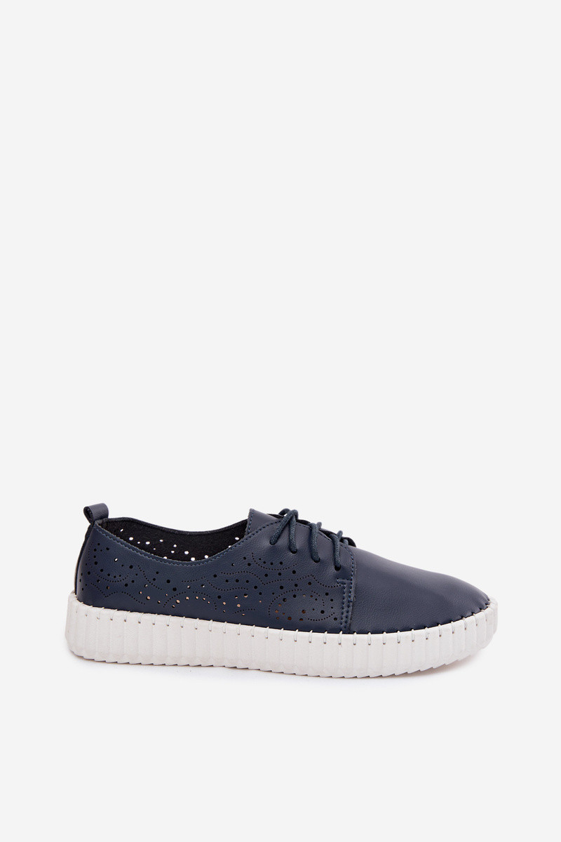 Tamsiai mėlynos spalvos ažūriniai batai su raišteliais Pearla