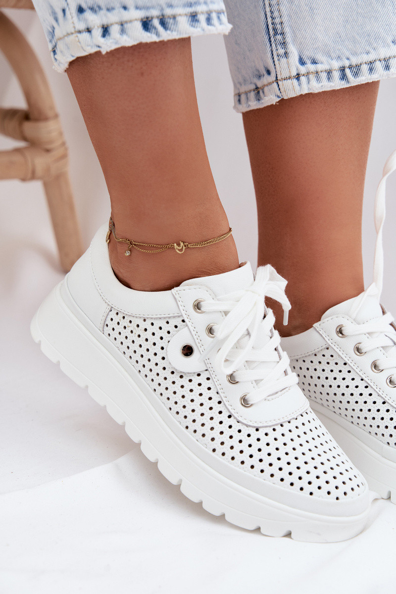 Auksinės spalvos ažūriniai odiniai batai moterims Vinceza 79629