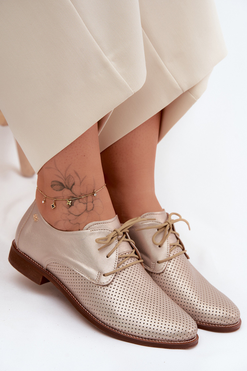 Auksinės spalvos elegantiški moteriški odiniai batai su raišteliais Zazoo 4238