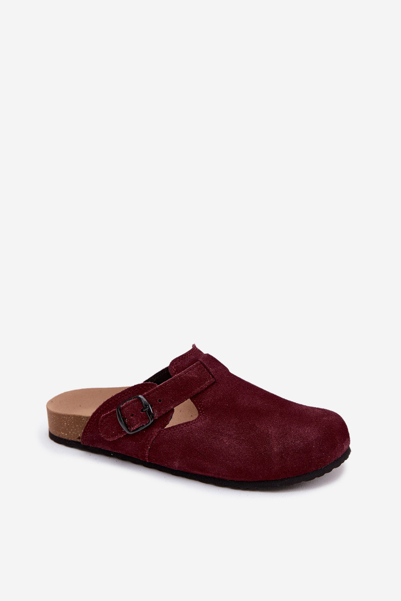 Dirbtinės zomšinės mule šlepetės su sagtimis Zazoo 1905, tamsiai violetinės spalvos