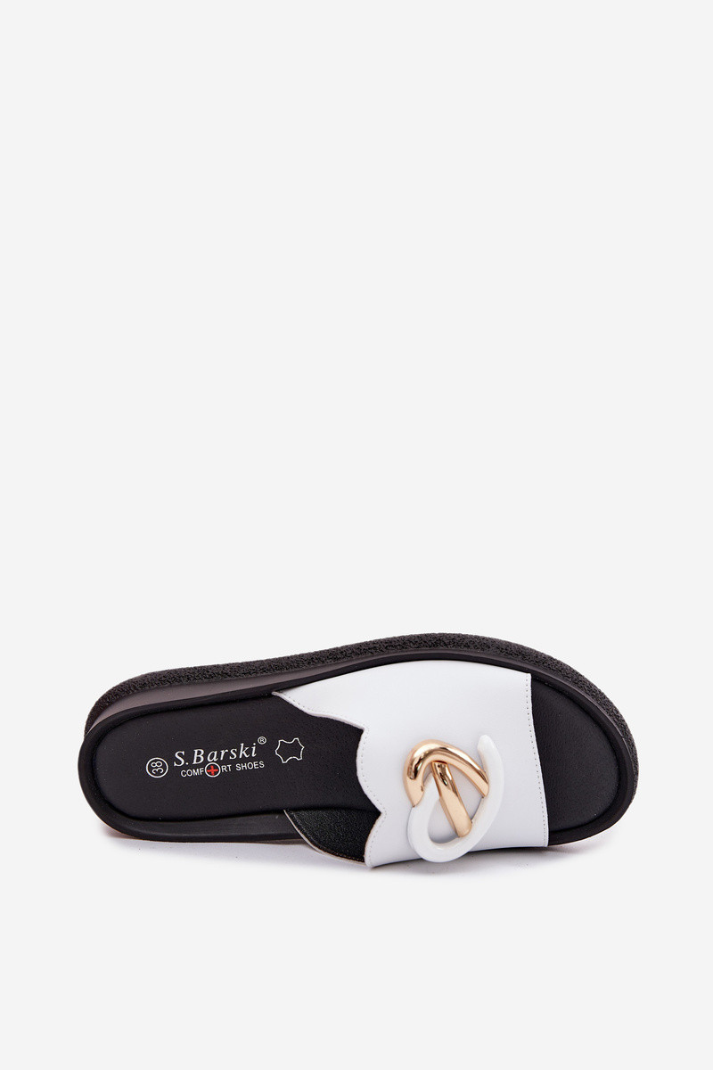 Kunstnahkade sussid koos dekoratiivsete detailidega valges värvitoonis
