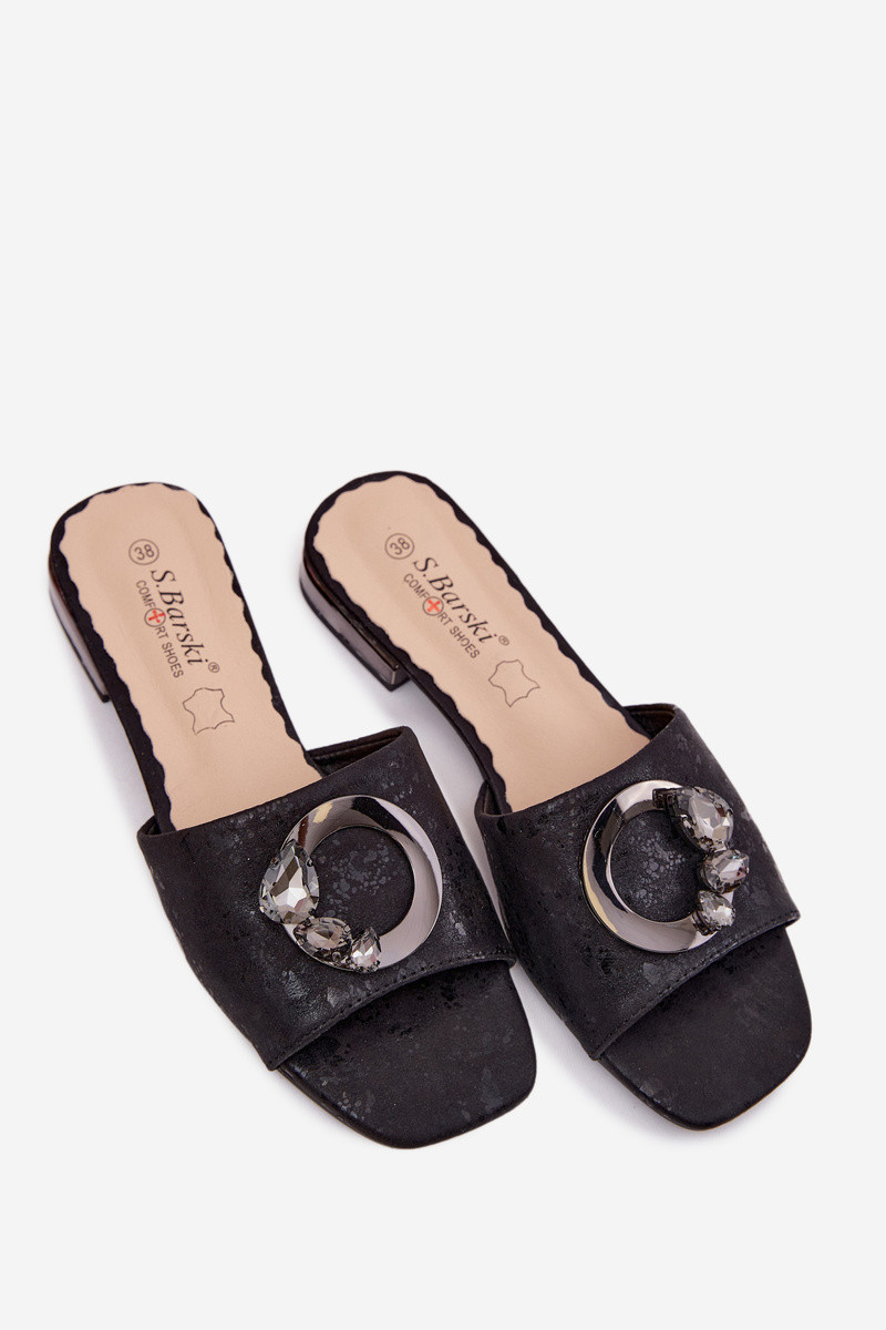 Moteriškos šlepetės su plačiais kulniukais ir ornamentais KV61-6025 juodos spalvos