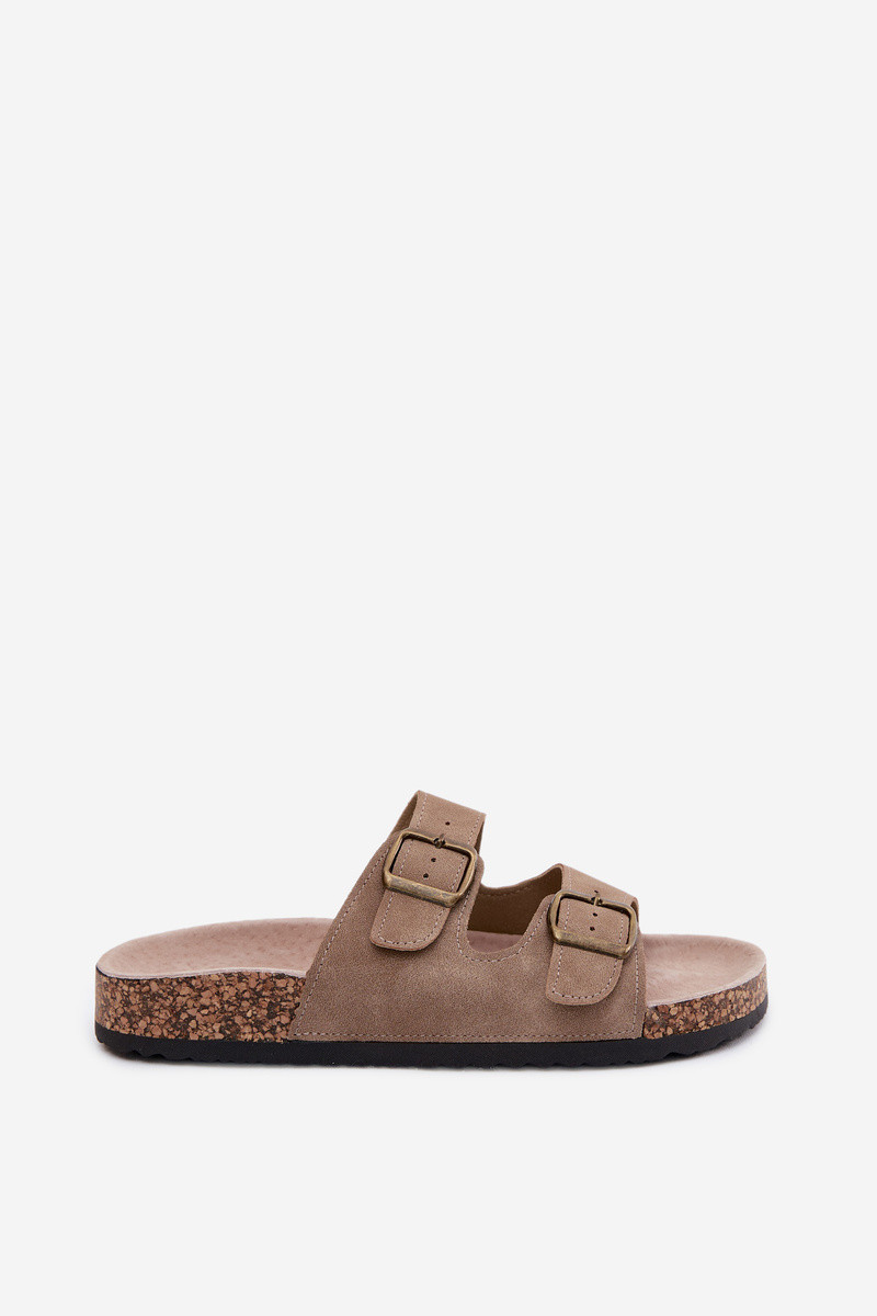 Chaki spalvos moteriškos šlepetės su sagtimis ant kamštinio pado Harleen