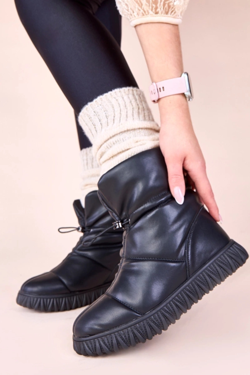 Czarne śniegowce skóra naturalna ze ściągaczem Raschmi