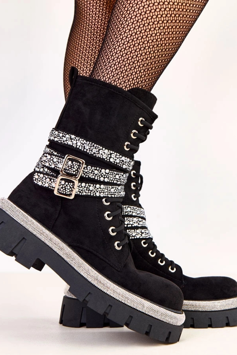 Czarne traperki eleganckie zdobione cyrkoniami Steveth