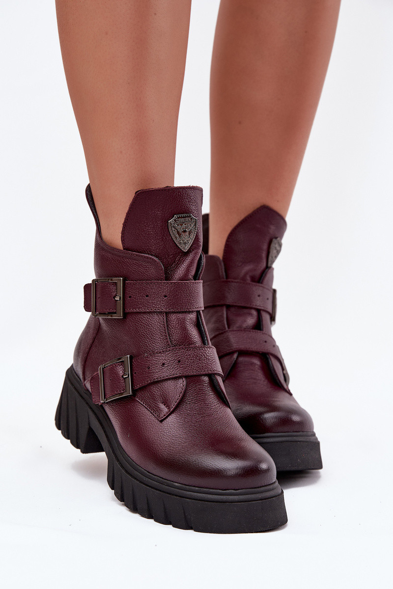 Skórzane Ocieplane Botki DamskiewithKlamrami I Ozdobnym Detalem Zazoo 60482 Czekoladowe