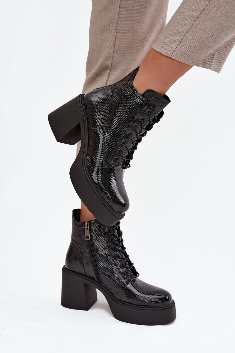 Lakierowane Skórzane Botki Damskie Na Platformie I Słupku Vinceza 66817 Czarne