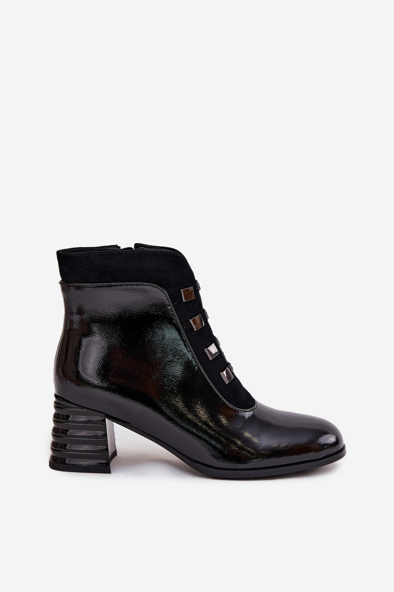 Skórzane Lakierowane Botki Damskie Na Słupku D&A MR52-144 Czarne