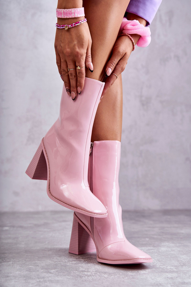 Damskie Lakierowane Botki Kozaki Różowe Margit