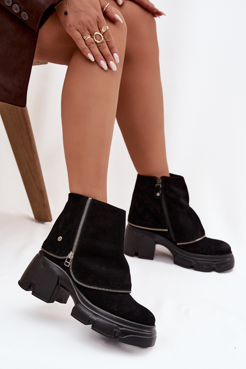 Skórzane Botki DamskiewithWywiniętą Cholewką Maciejka 07145-01 Czarne