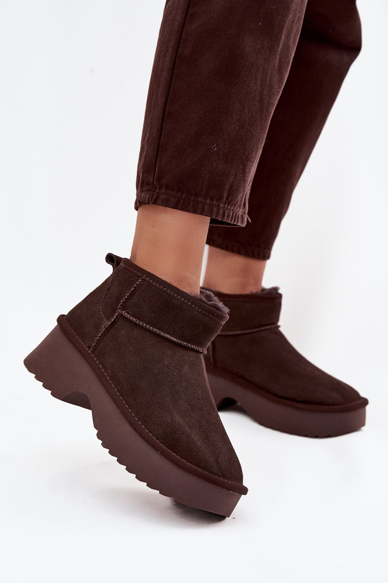Śniegowce DamskiewithNaturalnego Zamszu Ocieplane Futerkiem Camel Milora