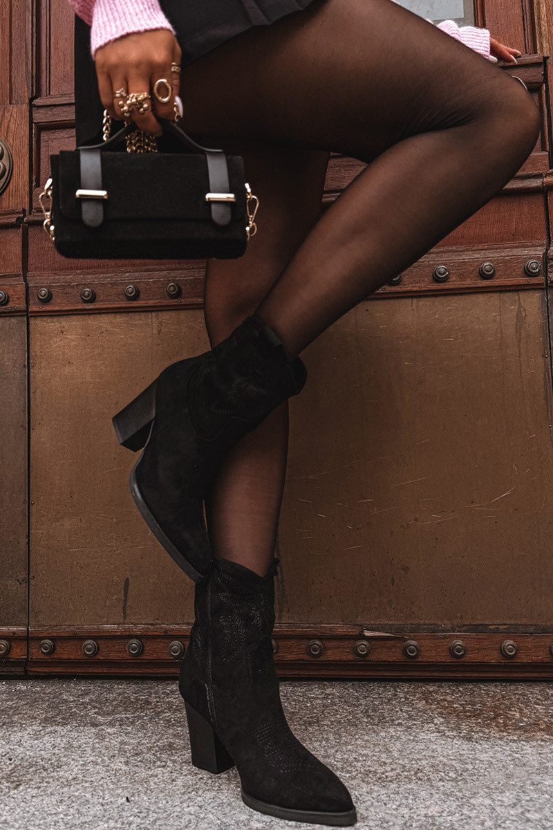 Botki Kowbojki Damskie Na Słupku Eko Zamszowe Ciemnobeżowe Carissa