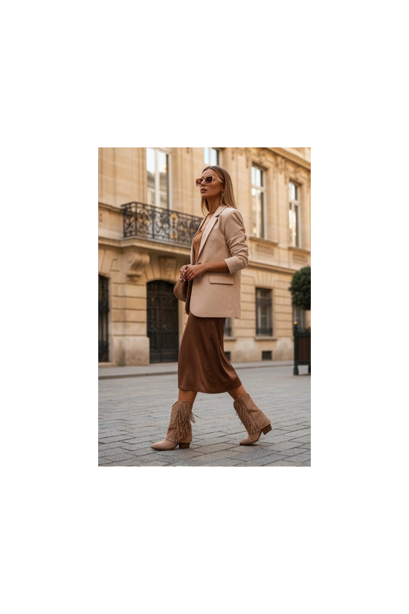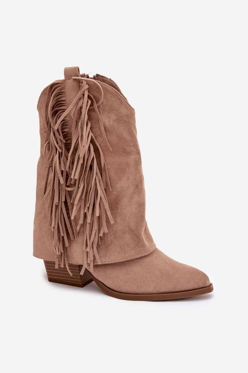 Botki Kowbojki DamskiewithFrędzlami Na Słupku Khaki Gralina