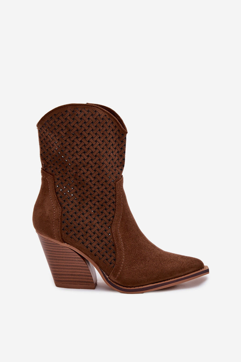 Ażurowe Botki Damskie Na Słupku Brązowe Rivorina
