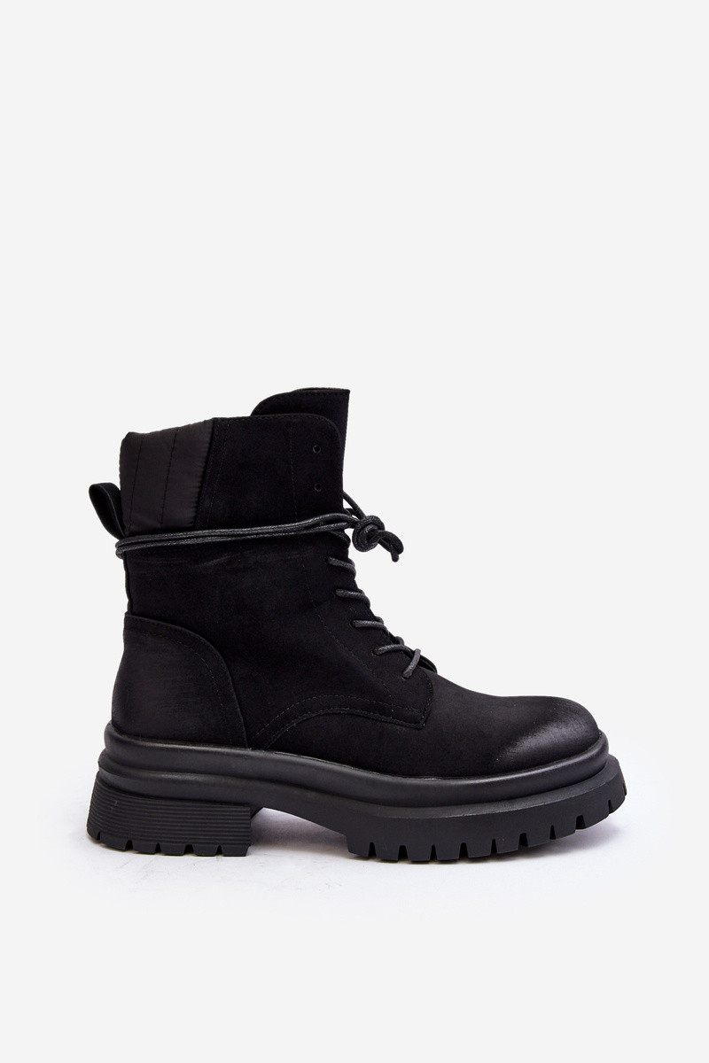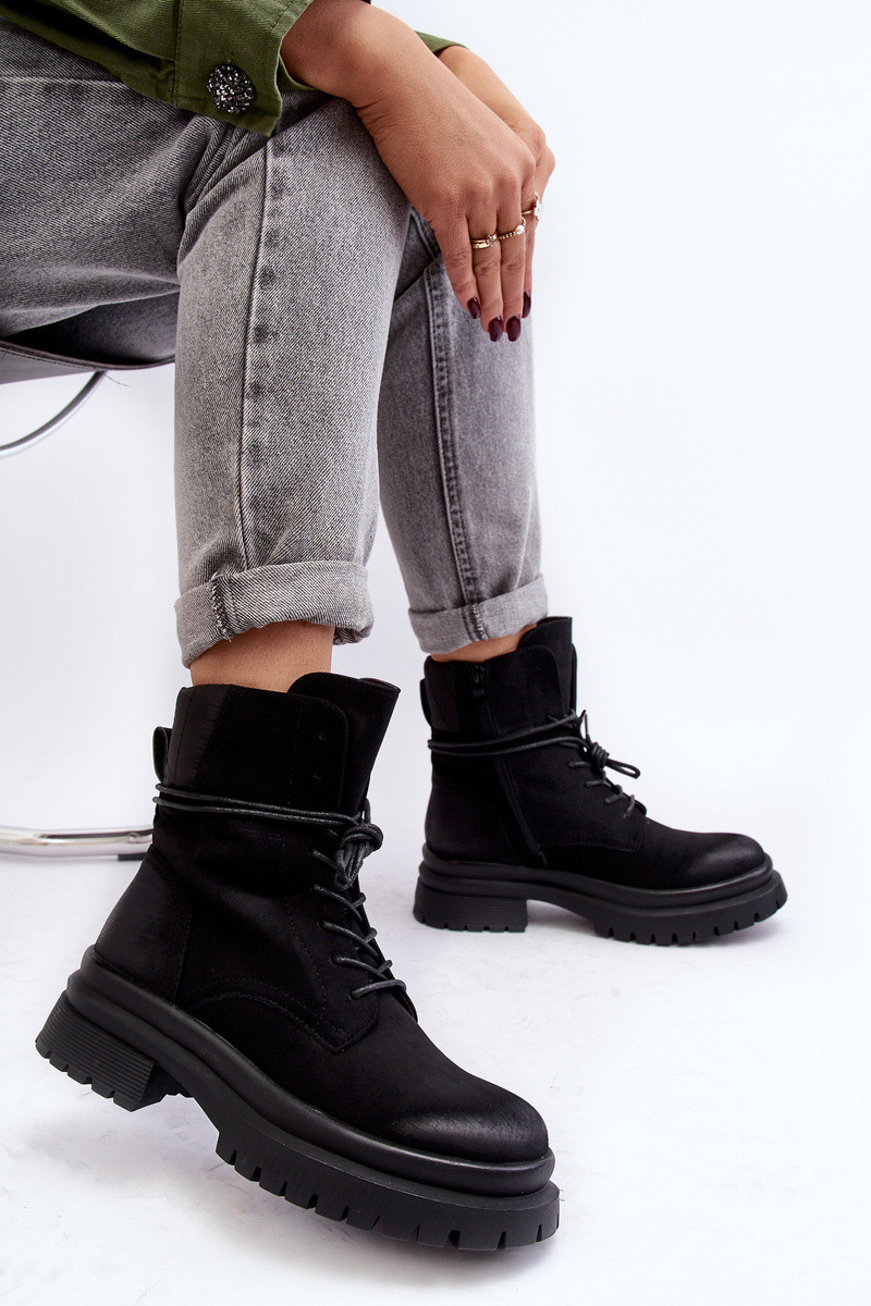 Damskie Botki Trapery Na Grubej Podeszwie Czarne Narelona