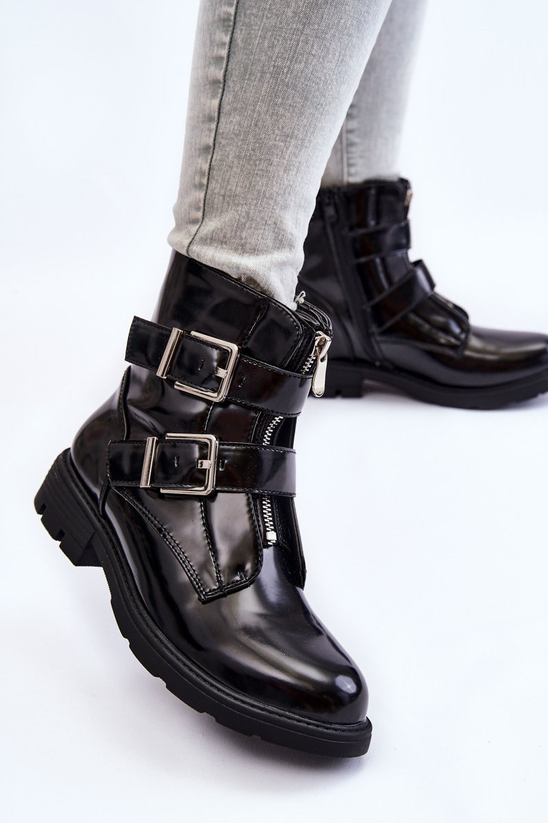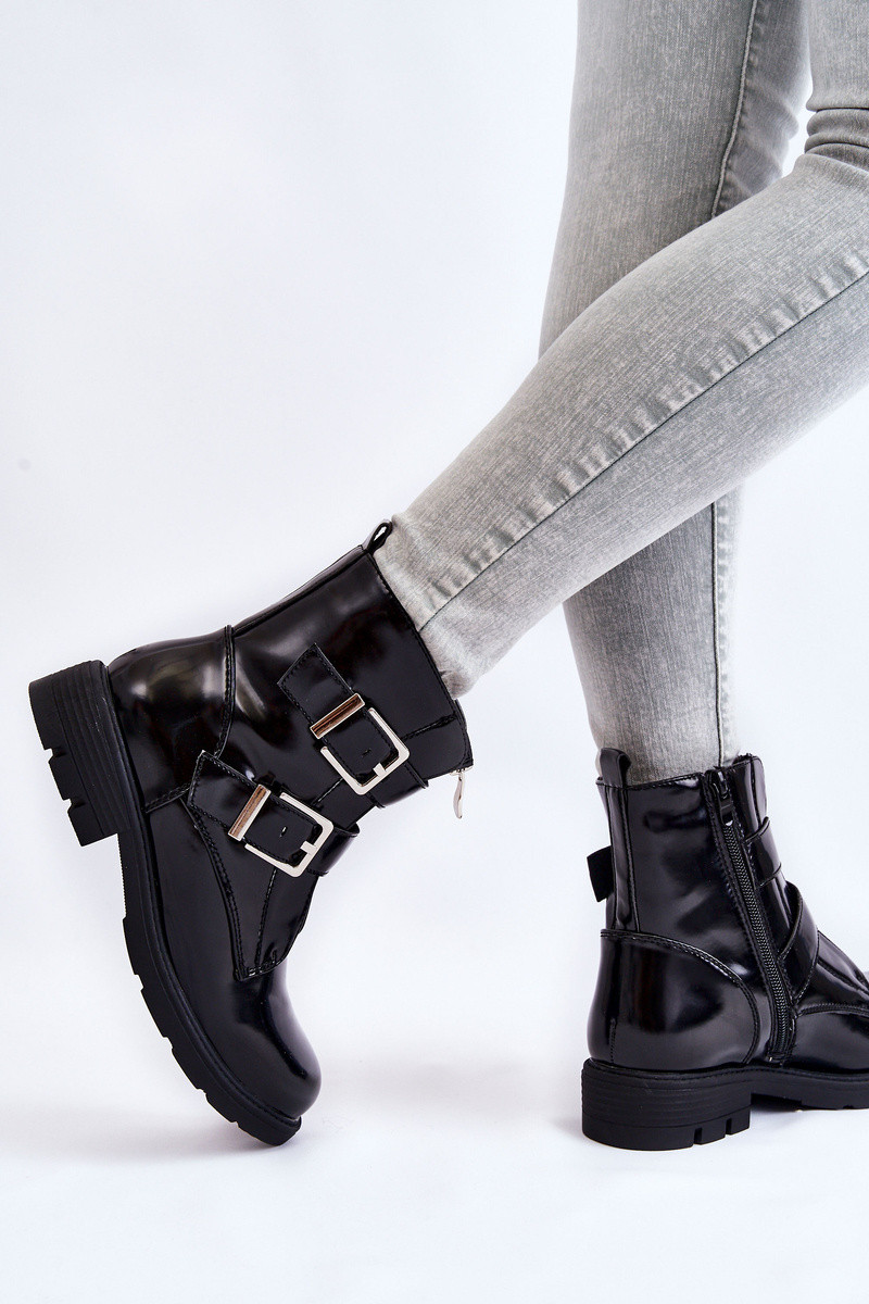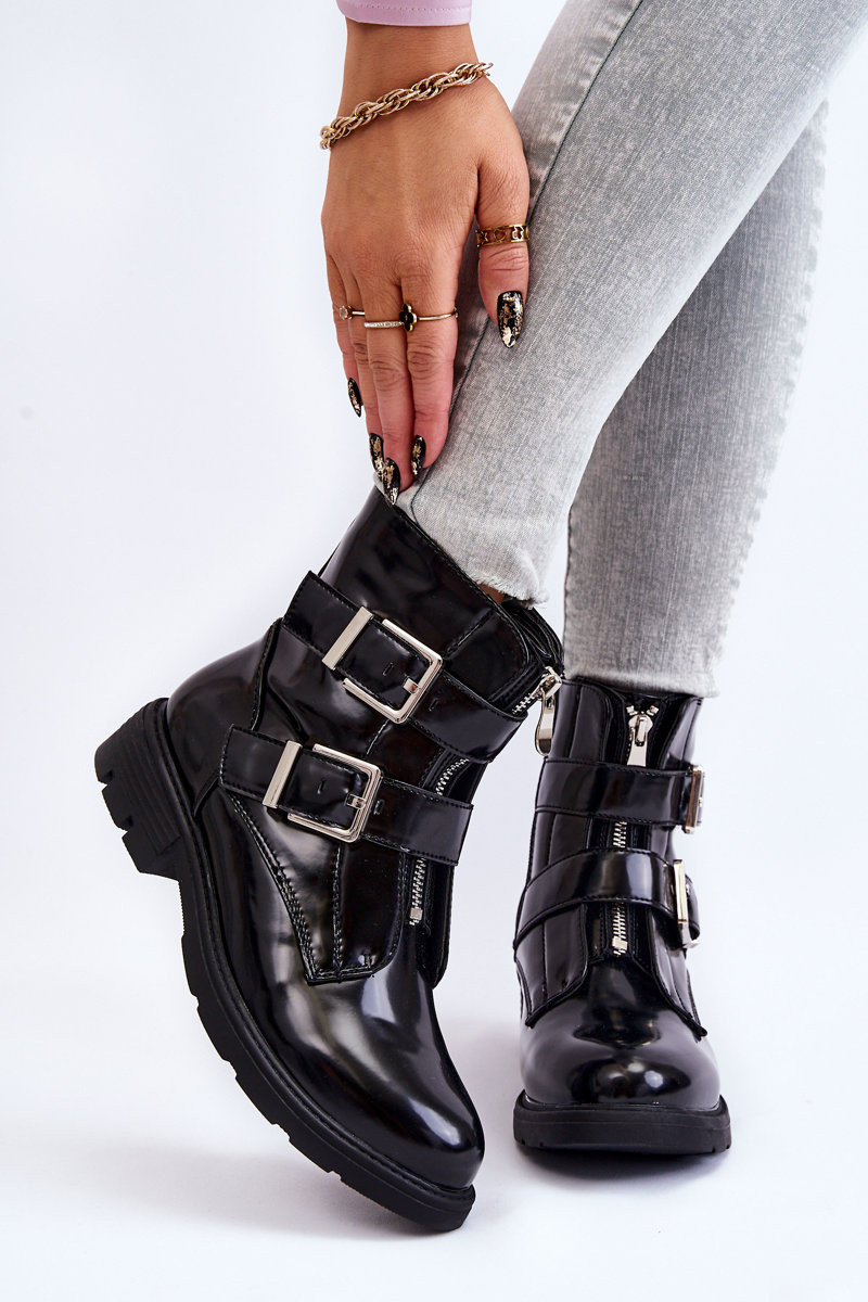 Damskie Ocieplane Botki Na Płaskim ObcasiewithSuwakiem Czarne Joshie