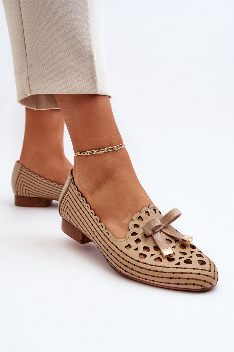 Ażurowe Baleriny Damskie Z Kokardką Granatowe Nestavia