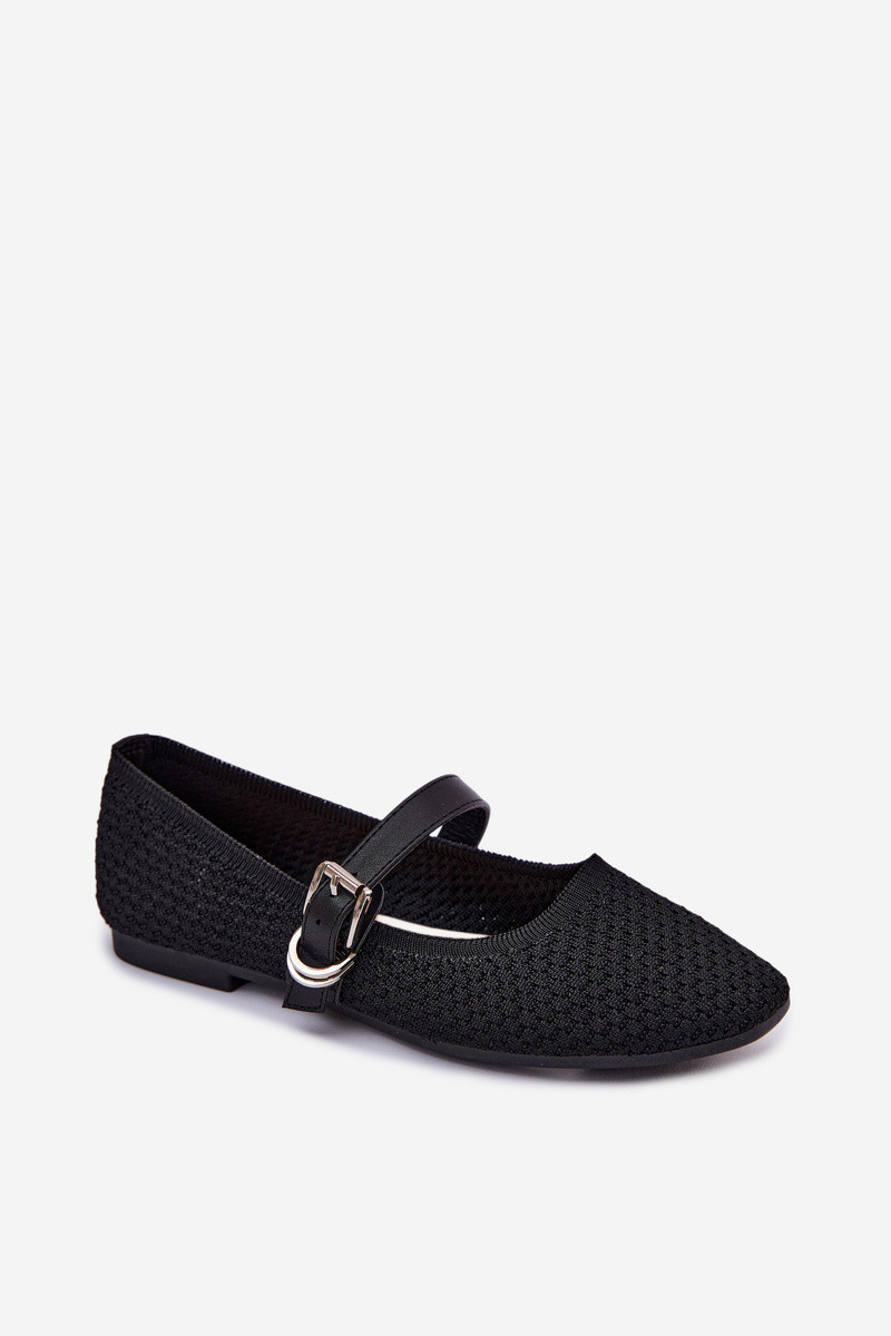 Materiałowe BalerinywithPaskiem I Klamrą Czarne Jelisa