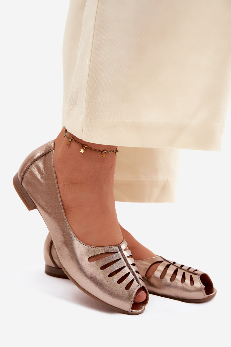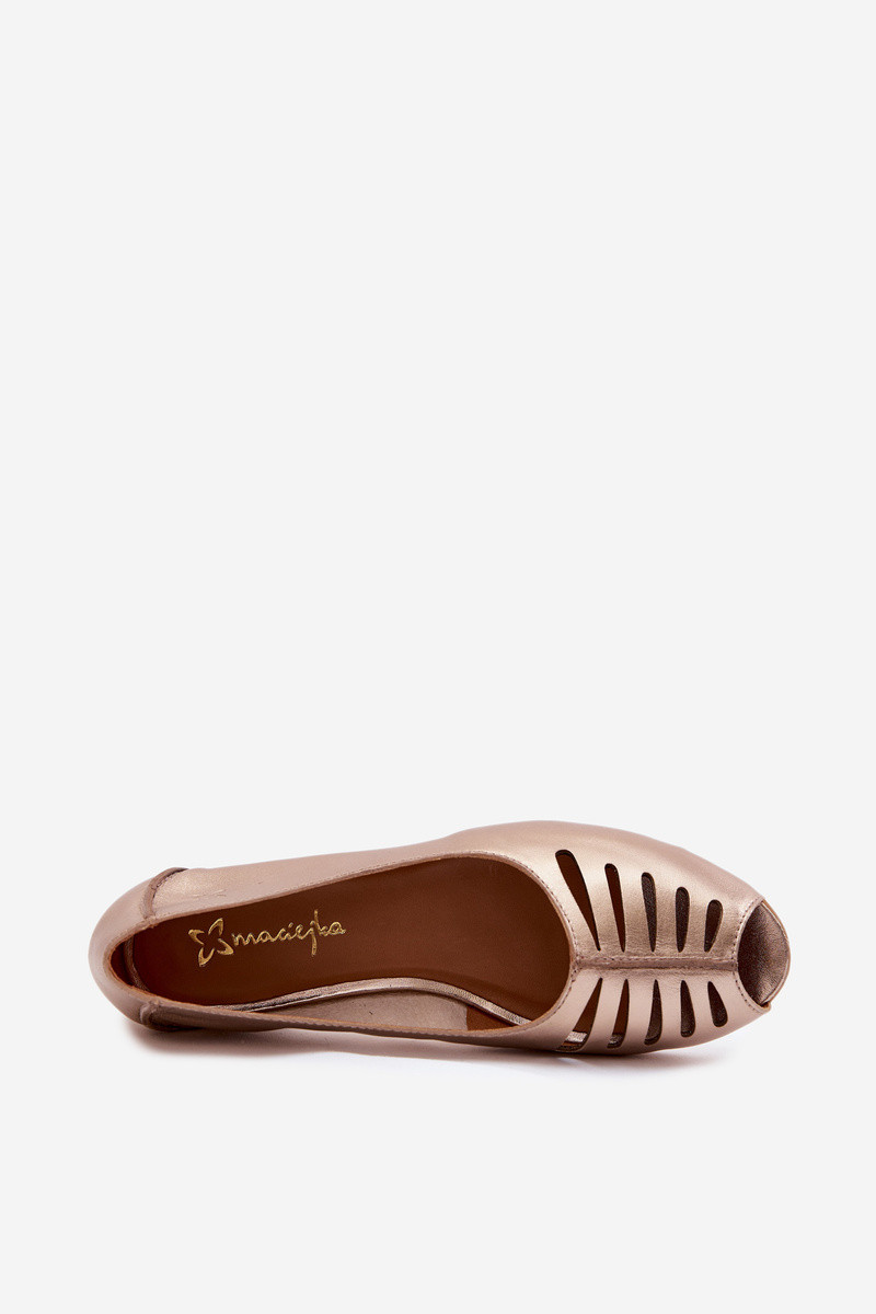 Ażurowe BalerinywithNaturalnej Skóry Maciejka P7541-32 Złote