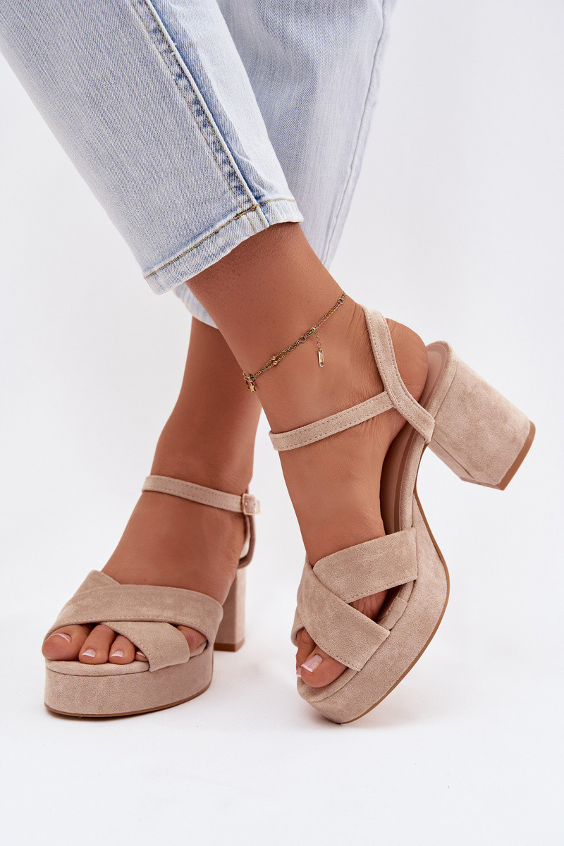 Sandały Damskie Na Słupku Beżowe Janelia