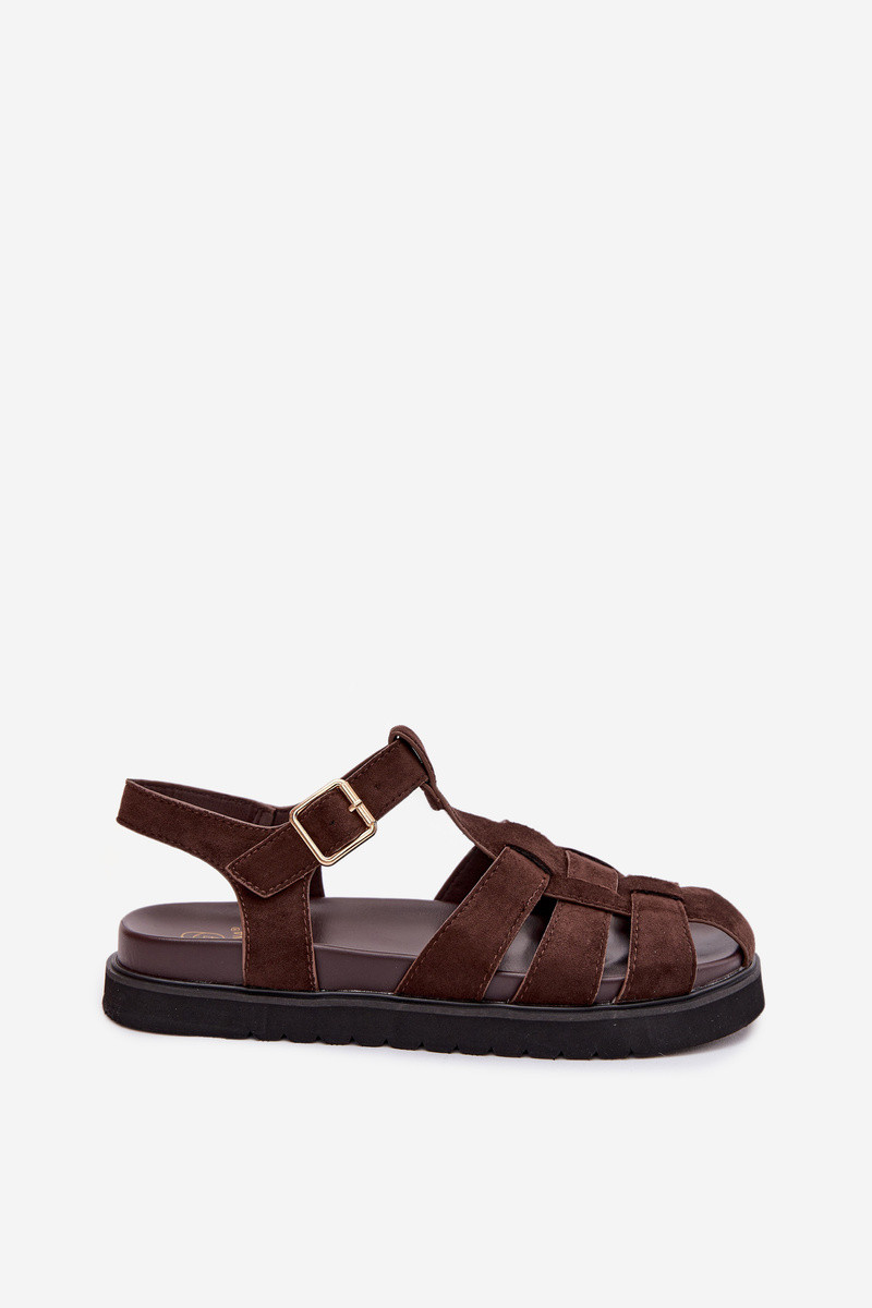 Sandały Damskie Rzymianki Ze Złotą Klamrą Na Platformie Czekoladowe Terelina