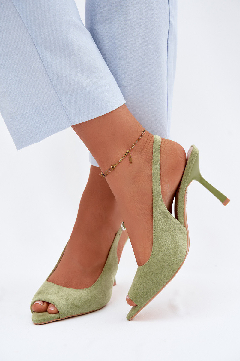 Sandały Damskie Na Szpilce Eko Zamszowe Beżowe Sevina