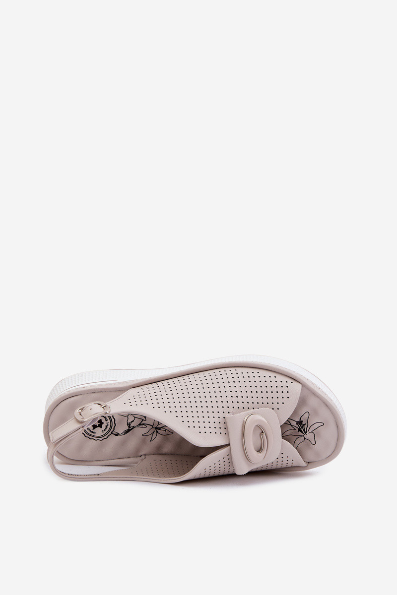 Skórzane Sandały DamskiewithOzdobnym Detalem Szare Deliva