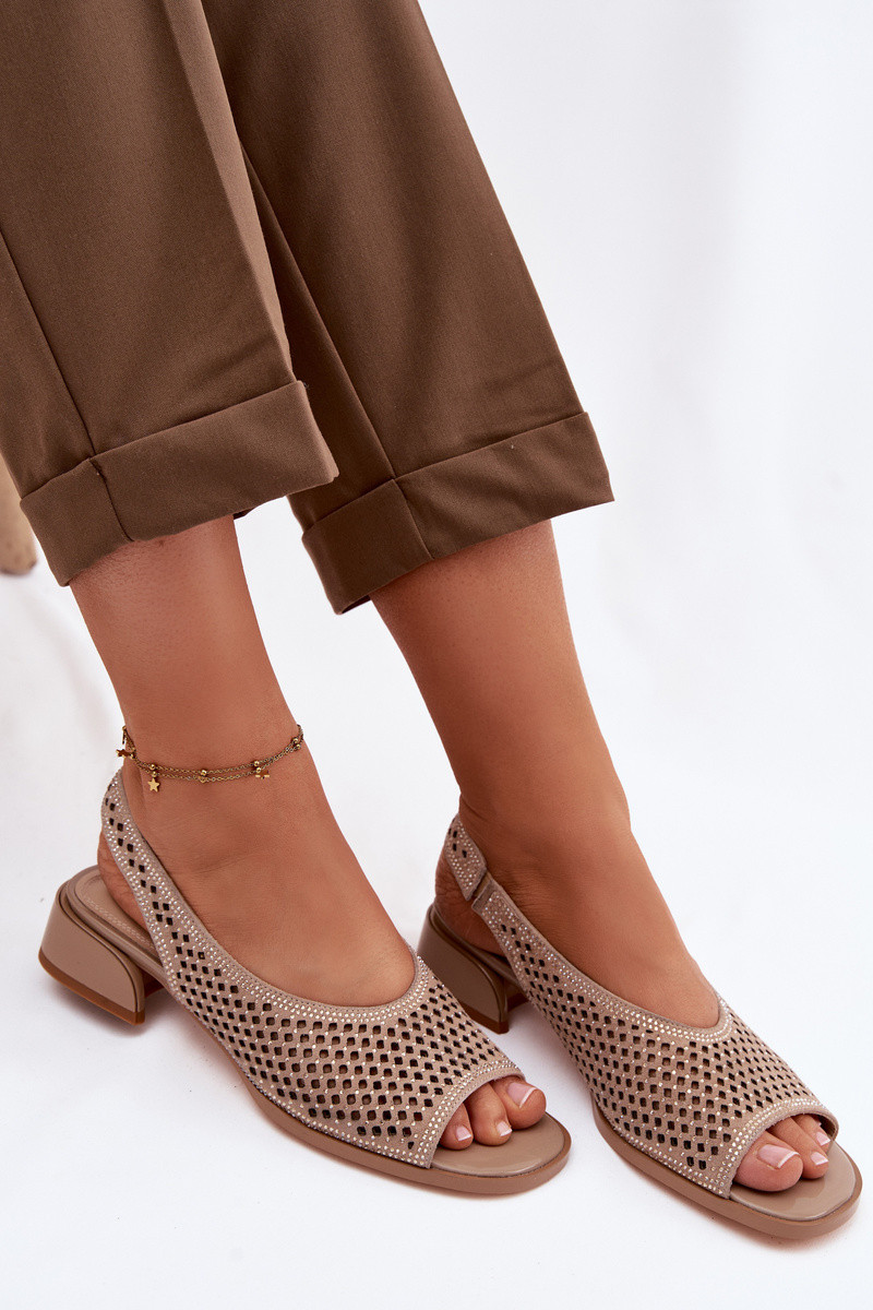Zdobione Ażurowe Sandały DamskiewithZamszu Na Klocku D&A CR61-3131 Czarne