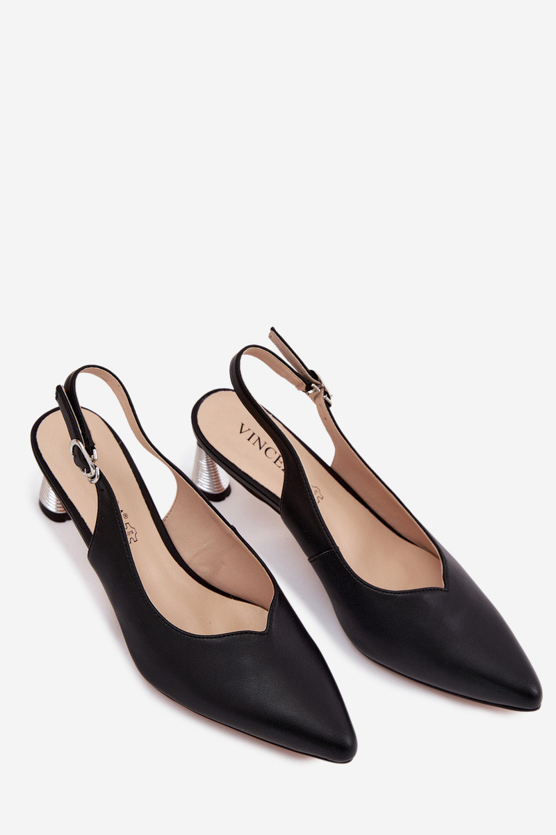 Skórzane Sandały Damskie Na Obcasie Vinceza 66922 Czarne