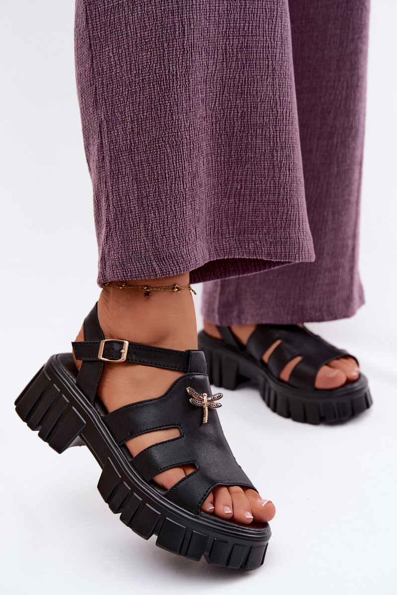Damskie sandały na platformie z klamrą Vinceza 79627, w kolorze czarnym