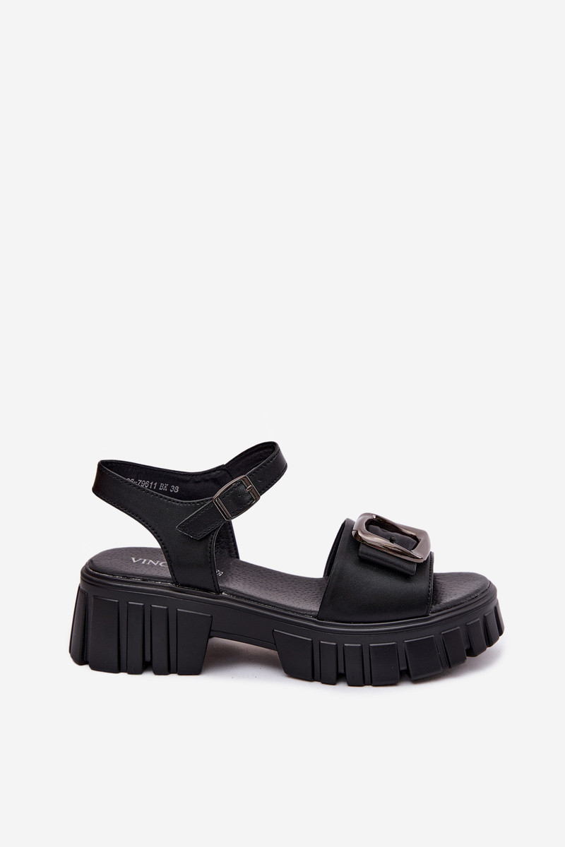 Damskie sandały na platformie z klamrami Vinceza 79611, w kolorze piaskowym