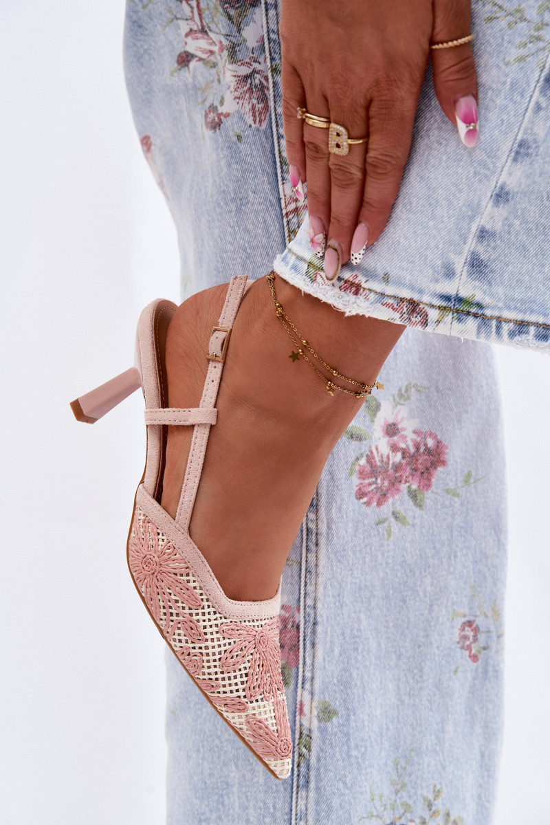 Beżowe sandały na obcasie z kwiatami Kelmira