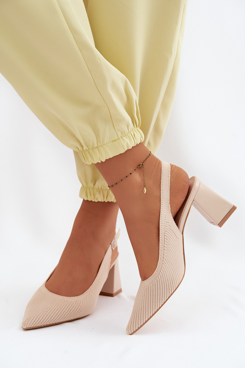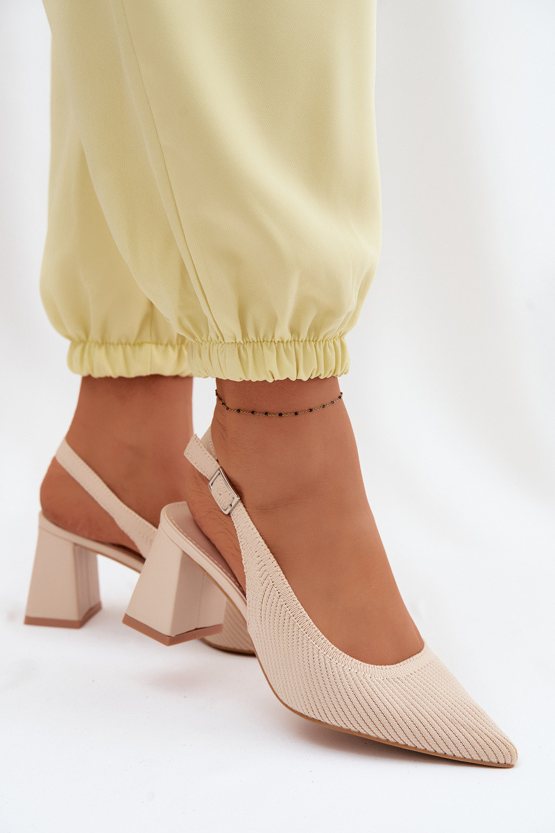 Materiałowe Sandały Na Słupku Beżowe Elissea