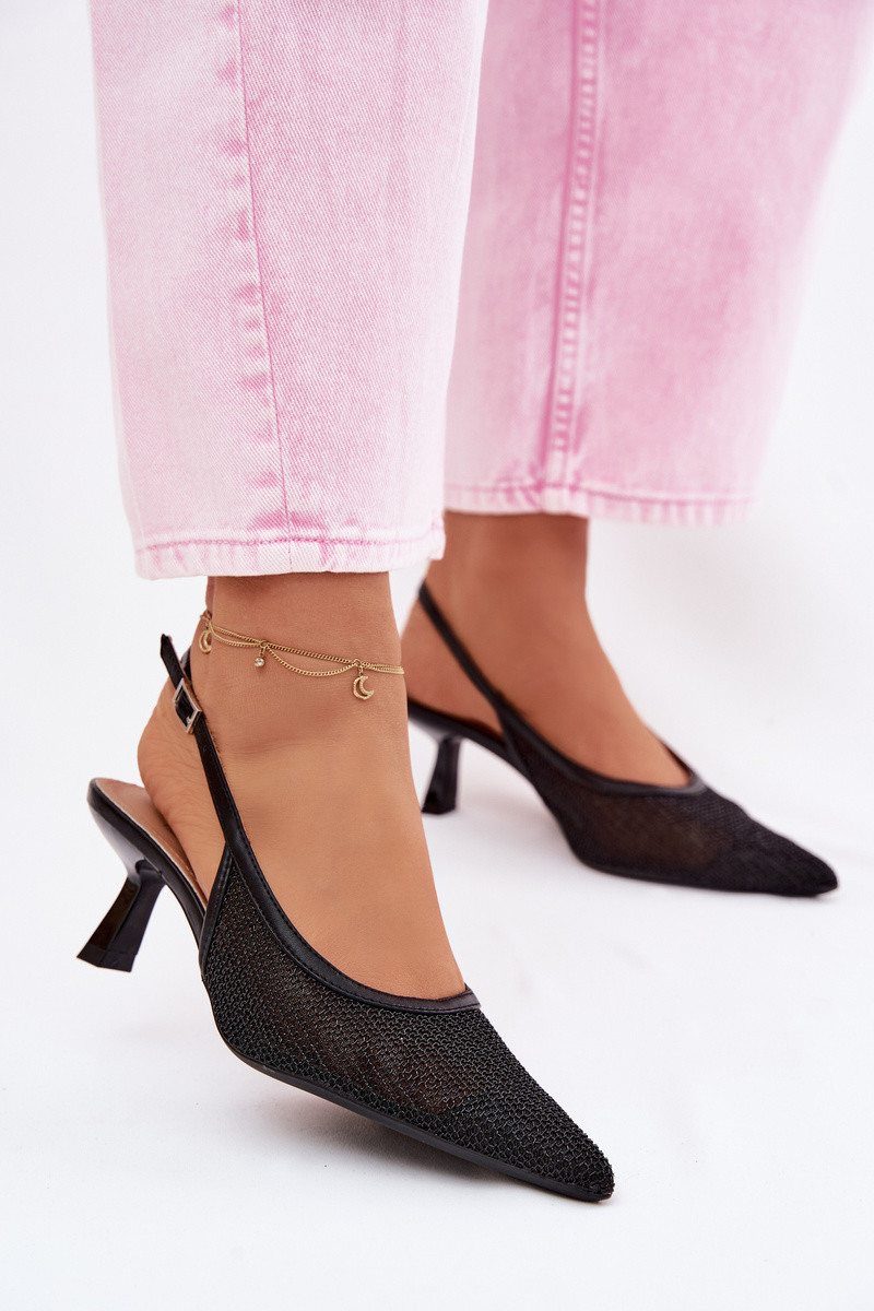 Srebrne sandały siateczkowe na małym obcasie Calora