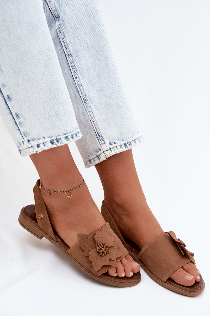 Zamszowe sandały z szerokimi obcasami i dekoracyjnymi kwiatami Zazoo 407471 w kolorze...