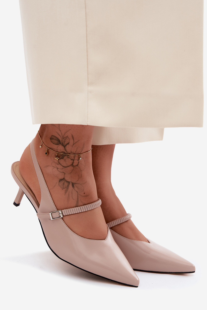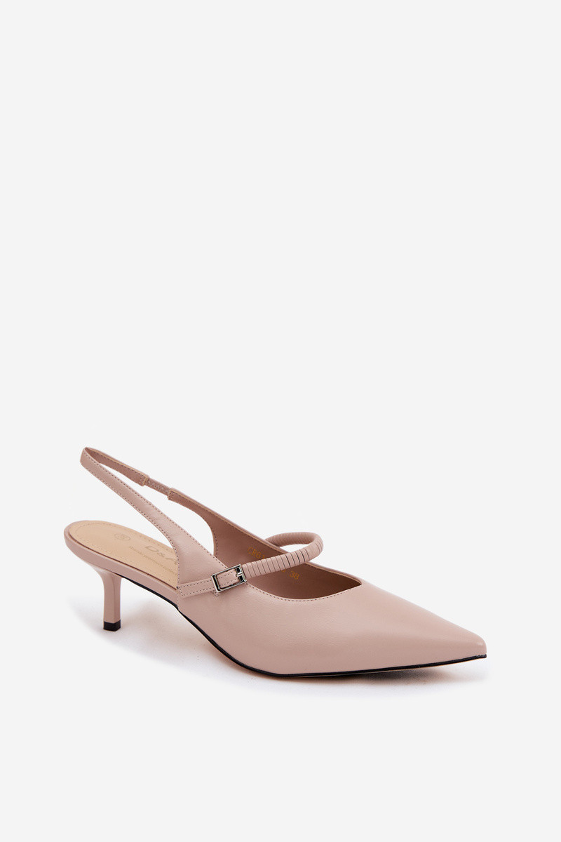 Skórzane Czółenka Sandały Na ObcasiewithPaskiem D&A CR61-3046 Beżowe