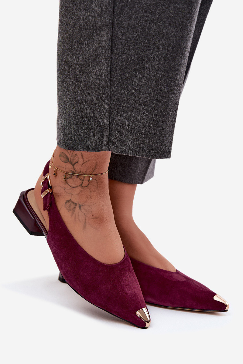 Skórzane Zamszowe Sandały Damskie Na Niskim Obcasie D&A CR61-3050 Bordowe