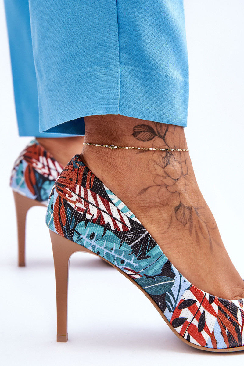 Modne Skórzane Szpilki Lewski Shoes 2659 Niebiesko-Czerwone