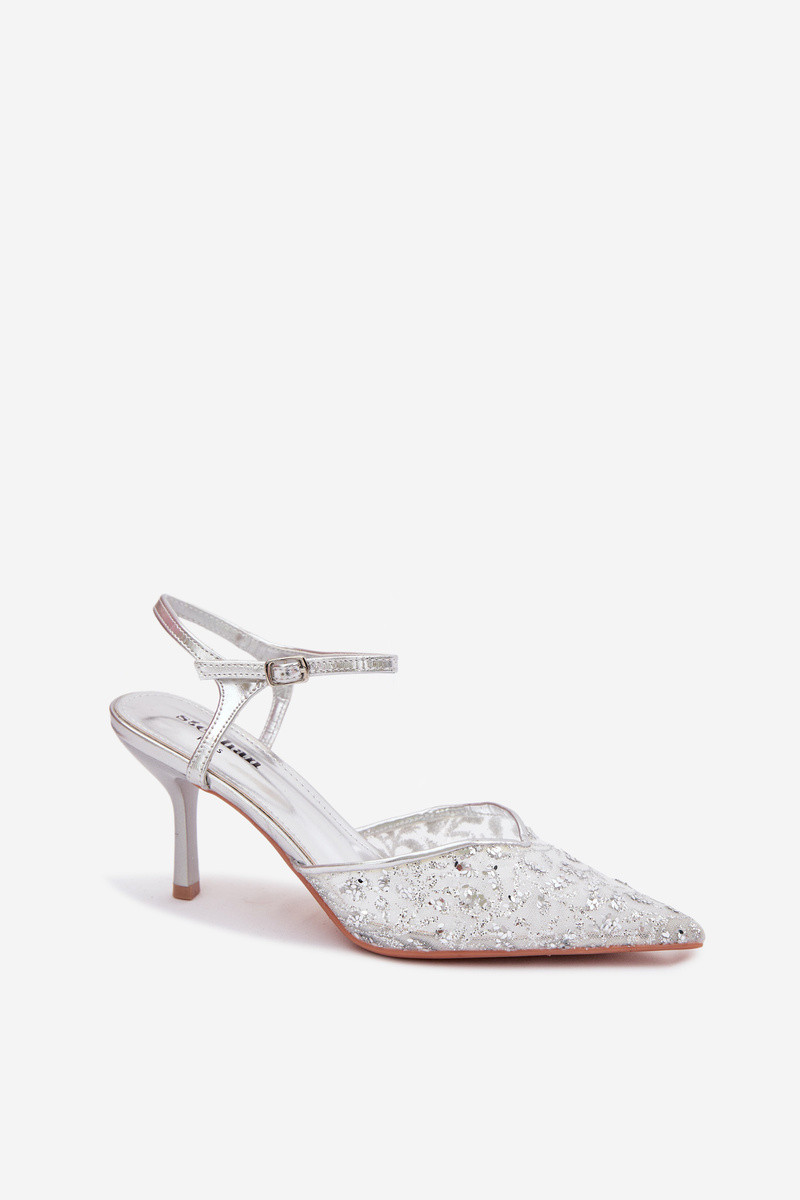 Siateczkowe Sandały Damskie Na SzpilcewithPołyskującym Zdobieniem Srebrne Laria
