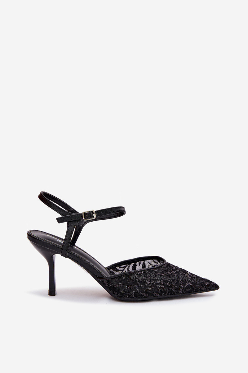 Siateczkowe Sandały Damskie Na SzpilcewithPołyskującym Zdobieniem Złote Laria