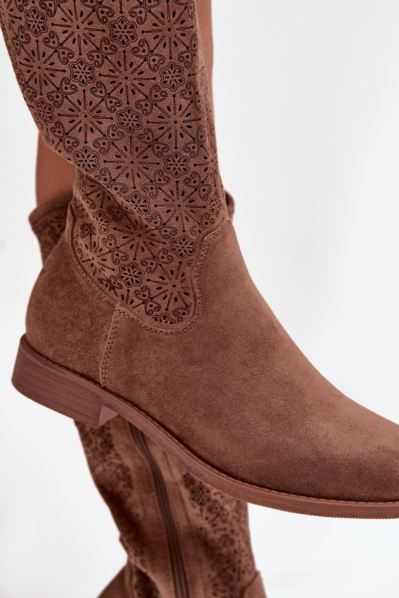 Kozaki Damskie Ażurowe Na Płaskim Obcasie S.Barski HY52-534 Beżowe